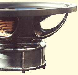 100mm-Mitteltöner (eff.Membranfläche 54cm²) / Membran aus kunststoffgebundenem Karbonfasergewebe (bewegte Masse 7g) / Metallkorb (Druckguss) / weiche Gummisicke (Compliance des Gesamtsystems 1,45 mm/N) / Schwingspule D 25mm, H 14mm (Spulenträger Kapton) / Polplatte 6mm, Polkern mit Bohrung, BL-Produkt 5,1Tm, Gewicht 0,85 kg